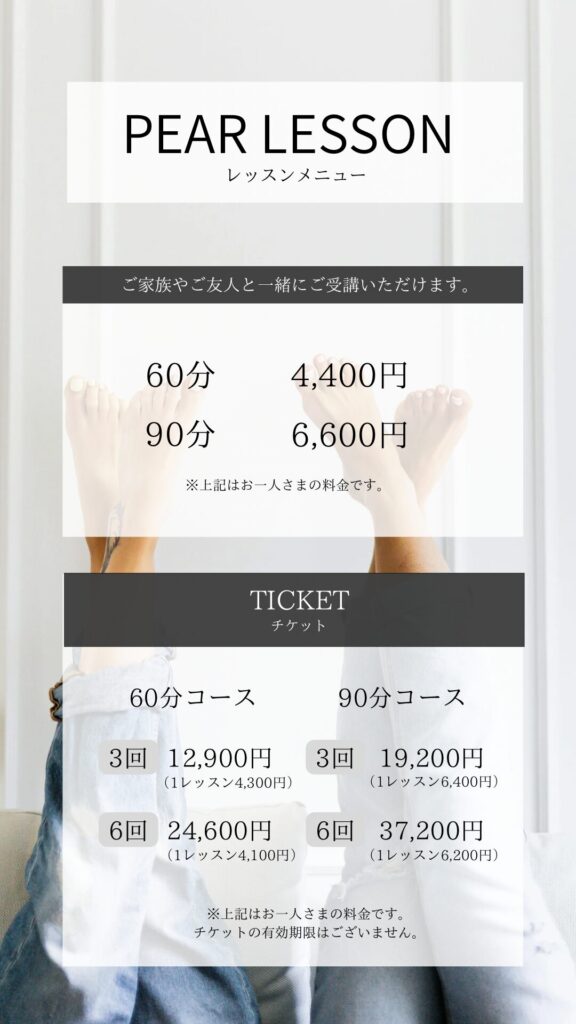 ※ご家族やご友人とのペア体験レッスン(90分)も、お一人さま4,400円にて承っております。